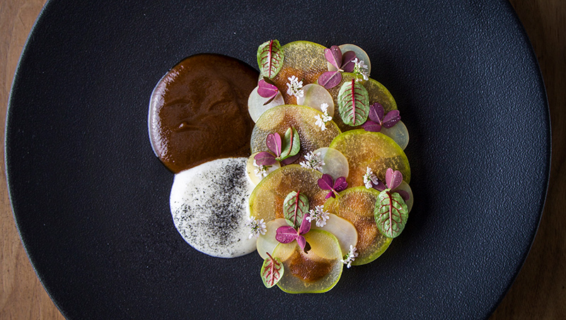 Por otro lado, en el concepto Mar hay láminas de chayote, pico de callo, ceviche de pescado, jugo de cacahuazintle, apio, yuzu, pulpo, chintextle, escabeche de zanahoria; lubina rayada, hoja santa, mermelada de jitomate y plátano macho, entre otros. Finalmente la Barra de Tacos ofrece 10 tiempos a elección del chef.