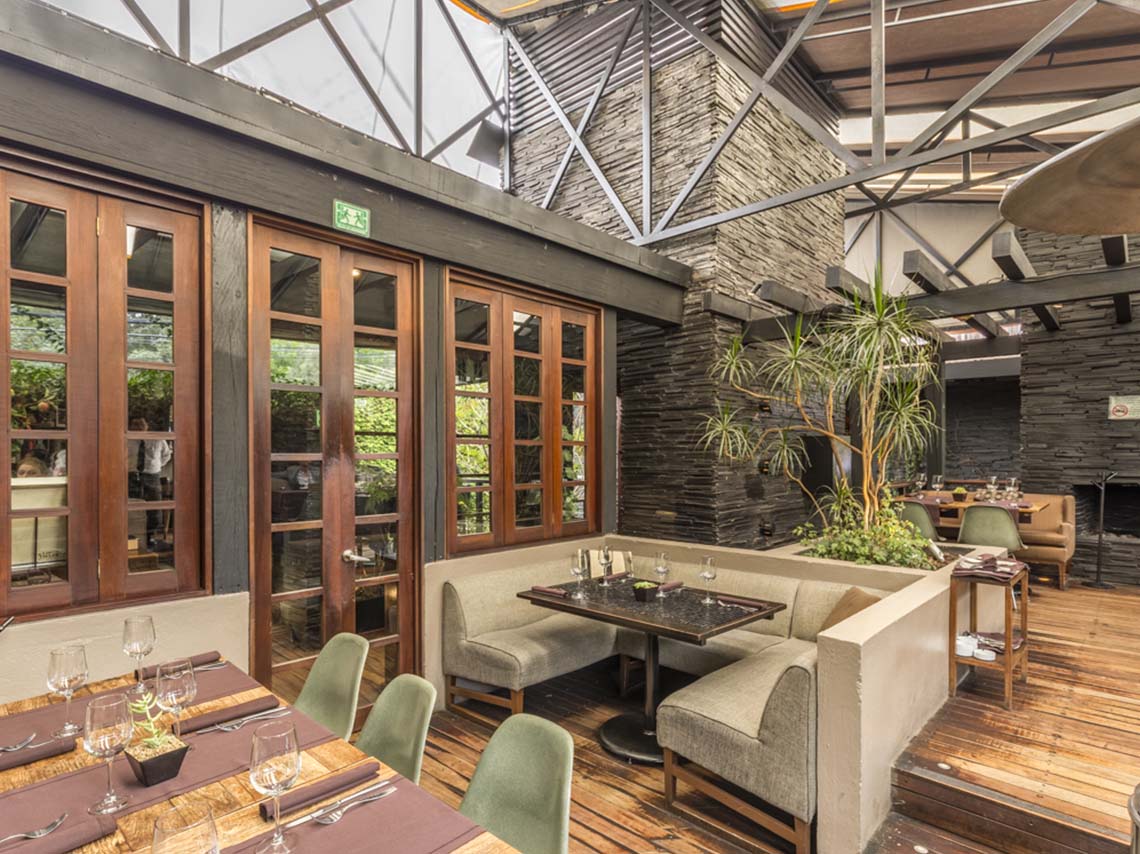 Este restaurante se encuentra a cargo del Chef Hugo Núñez. El menú incluye una gran variedad de propuestas culinarias tales como láminas de carne añeja, algas trufadas y espolvoreadas de queso cotija o espárragos ahumados con carne seca y quiso de Ocosingo. Así mismo puedes disfrutar de opciones como hamburguesas, croquetas de jamón o tacos rib-eye.