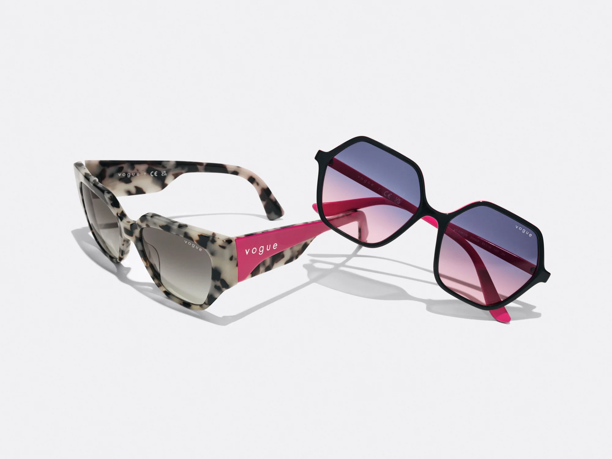 Hemos creado una campaña conmemorativa del 50 aniversario con nuestros modelos más icónicos en rosa intenso, el color que simboliza la rebeldía y la inclusión. Jugamos con nuestro logotipo, dándole un toque futurista y festivo en 3D. ¡Y eso no es todo! También renovamos nuestros empaques para que sientas la verdadera magia Vogue Eyewear.