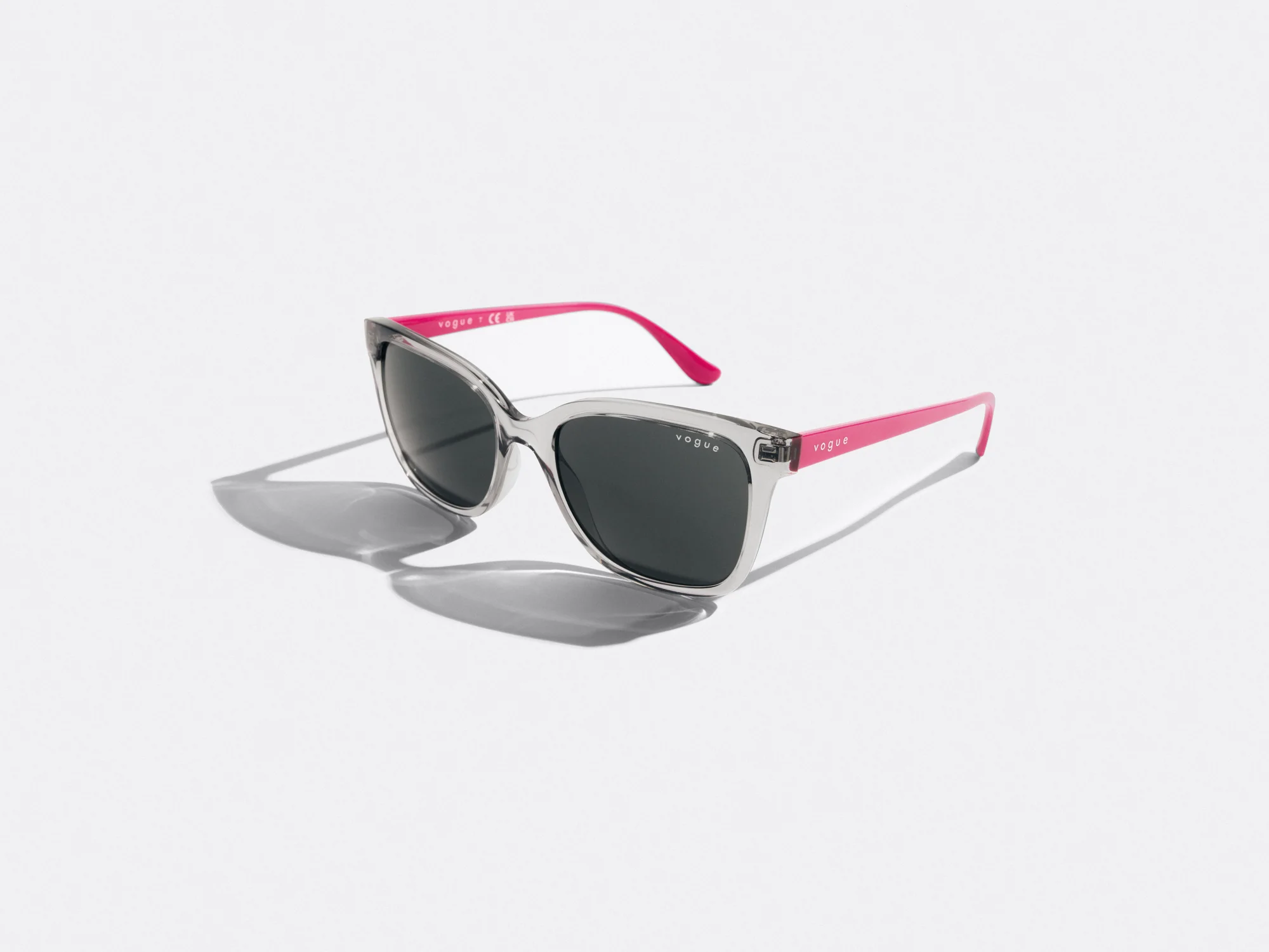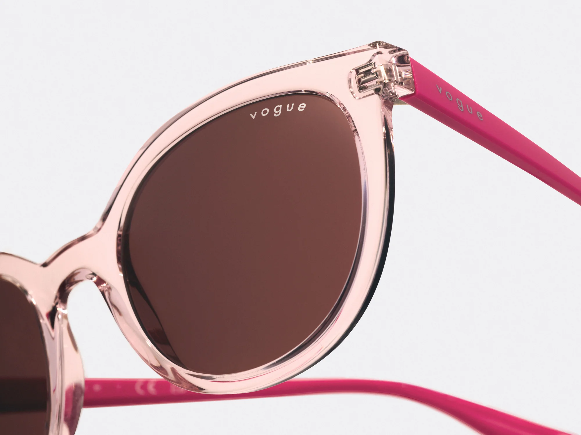0VO5509S: Un diseño clásico con un toque moderno en rosa intenso o beige, con lentes transparentes degradadas y un perfil único para destacar.