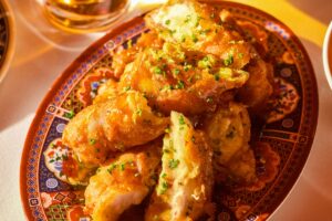 - Pollo general: Pollo marinado en vino chino y bañado en una irresistible salsa agridulce.