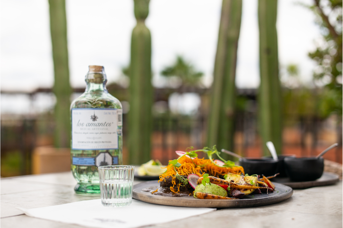 Además de todas estas experiencias únicas, te recomendamos disfrutar de la oferta gastronómica de Hotel Los Amantes. Terraza Amantes y Vaca Marina son centros de consumo ideales para comer o cenar; con una variedad de platillos que van desde cocina de mar hasta carnes Prime importadas y locales. Los chefs de la casa se esmeran en crear equilibrio y armonía en cada plato, combinando técnicas tradicionales y contemporáneas. También te invitamos a visitar Mezcalería Los Amantes; un refugio para los bohemios y nostálgicos, donde podrás disfrutar de catas, degustaciones y comprar botellas de mezcal.
