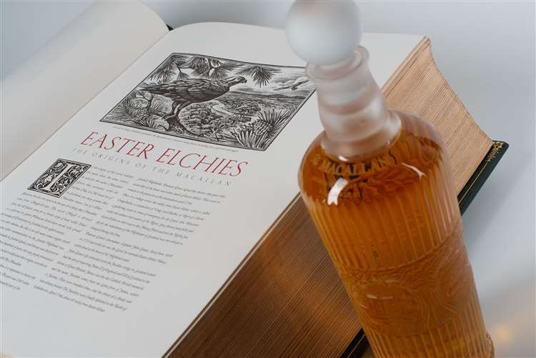La historia no sólo la cuenta la anhelada bebida sino también su original empaque. La destilera escosesa trabajó con el artista e ilustrador británico Andrew Davidson y la compañía de libros Shepherds Bookbinders, quienes crearon un curioso estuche con forma de libro.