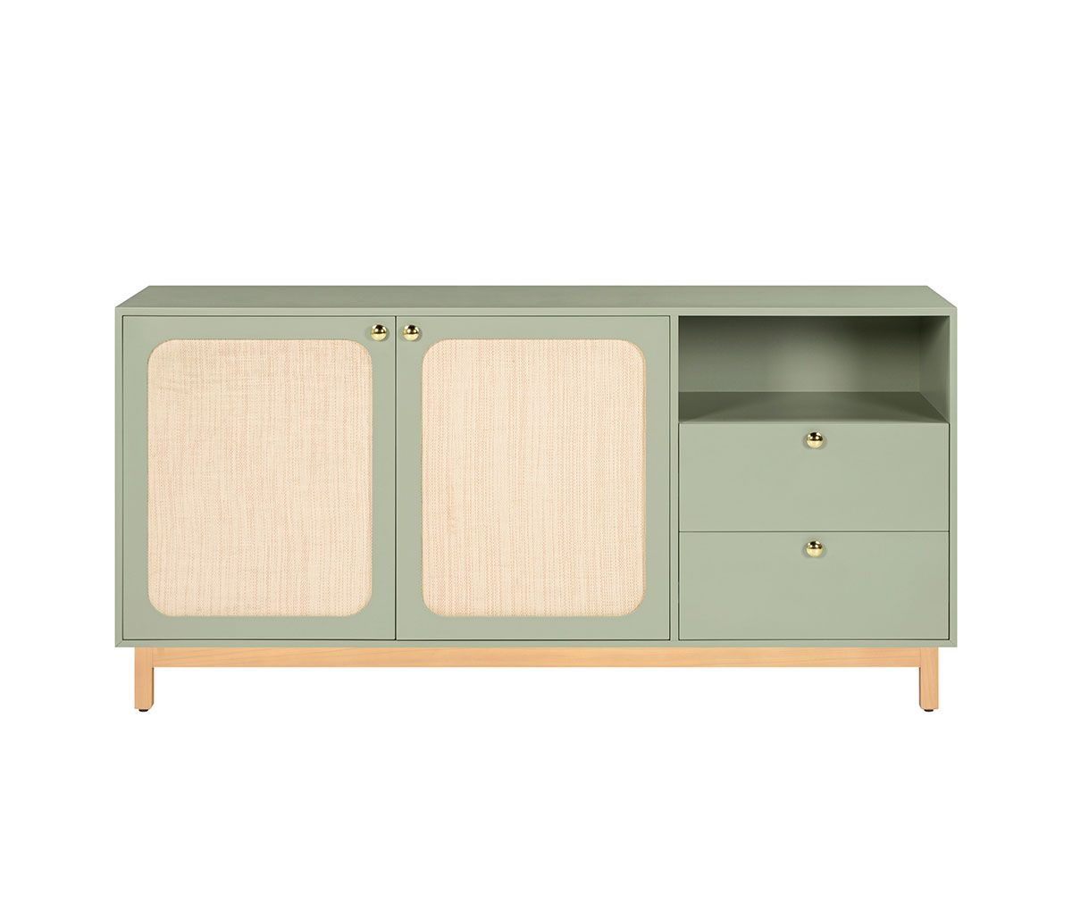 Madera sólida de encino y nogal, laminados de color, velvet, tejidos naturales como ratán y bejuco.