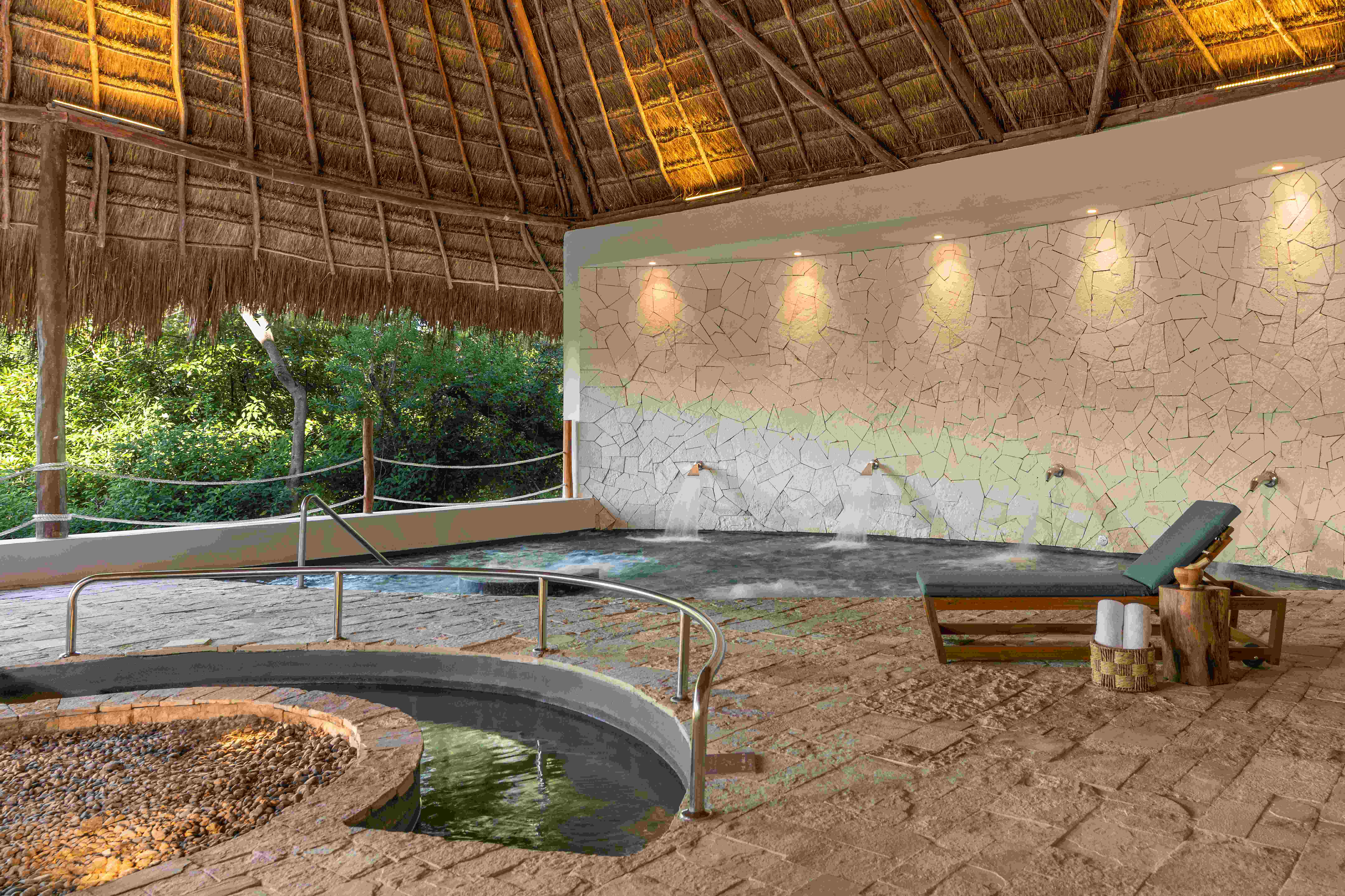 Zen Spa es un espacio diseñado para la relajación y el bienestar, con diez salas de tratamiento en el interior. Inspirado en el arte y la arquitectura de la cultura maya prehispánica, Zen Spa también ofrece una suite principal con bañera de hidroterapia, sauna y baños de vapor, un gimnasio con clases grupales, zona de fuerza y área cardiovascular, y un salón de belleza de servicio completo.