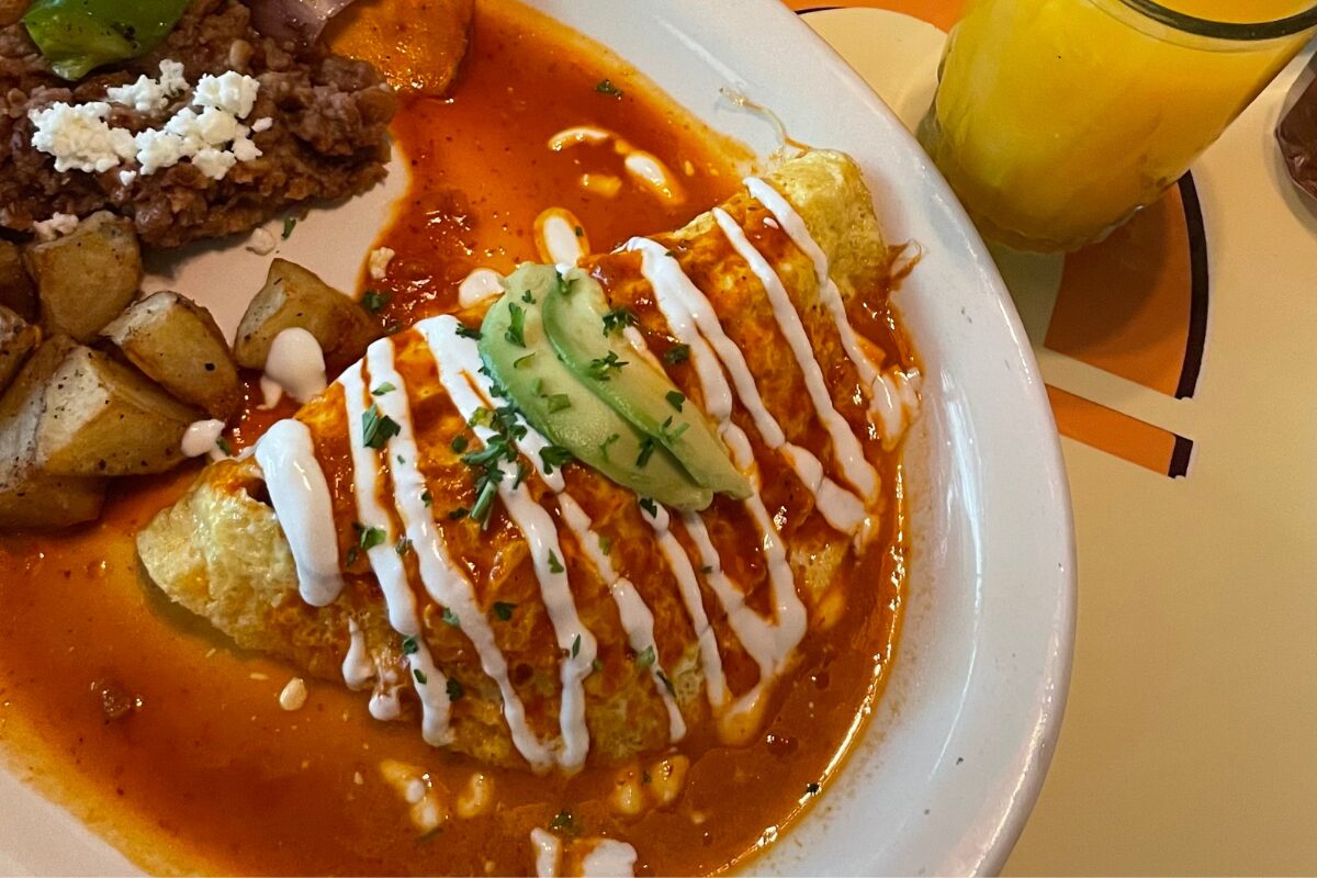Entre los imperdibles: el omelette relleno de camarones y chorizo, los chilaquiles al chipotle con pechuga, el omelette de barbacoa de lengua de res con tuétano marinado y, para los que buscan algo auténtico, el Good Morning Burrito envuelto en una tortilla de camote que redefine este clásico.