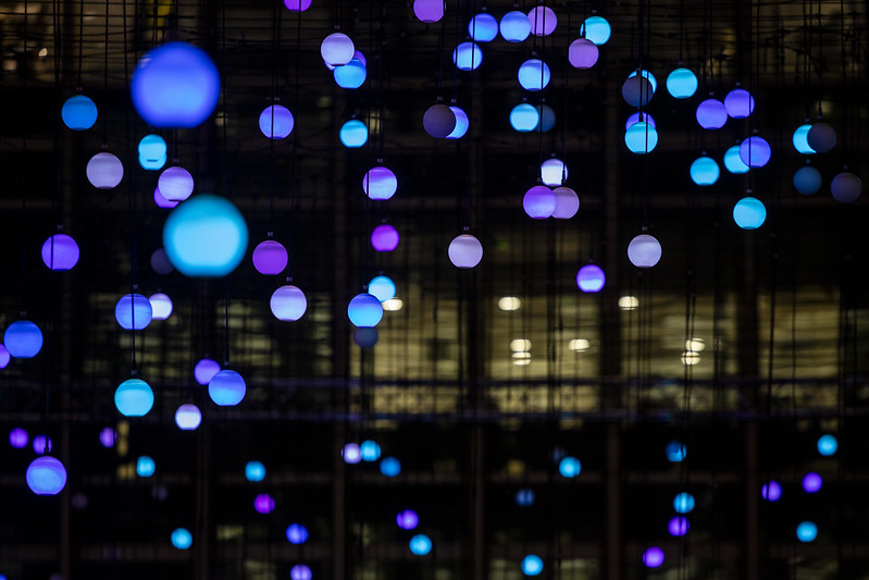 La temática de WAVE se enfoca en uno de los elementos fundamentales para la vida: el agua. Dentro de la ola que compone esta instalación, cada una de las 500 esferas es una unidad sensible y autónoma compuesta por luces LED, una bocina, una microcomputadora y un sensor de movimiento con conectividad inalámbrica, que juntos crean un recorrido único en el que la ola permite que tengas una experiencia inmersiva con quinientas luces y voces interconectadas entre sí.
